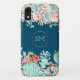 Ce boîtier téléphonique est décoré dans un style floral moderne avec un monogramme en faux or sur un arrière - plan bleu océan avec des cactus, des fleurs succulentes et des fleurs de corail. Personnalisez-le avec vos propres initiales.