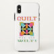 Cette belle boîte téléphonique présente la célèbre "Quilt 'Til You Wilt!" citation dans de magnifiques couleurs de rose chaud, orange, vert et turquoise. Il présente également une typographie de blocs de surface composée originale créée pour The Quilt Press. Nous le rendons si simple pour montrer votre passion pour la courtepointe! © La presse à courtepointe