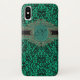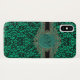 Cas fait sur commande de l'iPhone X de monogramme de dentelle irlandaise verte et noire de Kelly élégante. Complétez l'initiale pour personnaliser et protéger votre téléphone préféré dans le style.