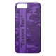 Coque motif smartphone Camouflage dans violet foncé avec champ de texte modifiable. Customisez avec jusqu'à 15 lettres, chiffres ou symboles. Disponible pour les plus récents modèles iPhone et Galaxy.
