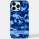 Personnalisez cette coque de iPhone 16 pro max à camouflage bleu avec votre nom dans une police CAP moderne et tendance en bleu foncé sur bleu clair. C'est tellement moderne, féminin et tendance ! Parfait pour n'importe quelle fille country !
