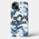 Un motif de camouflage d'hiver blanc, bleu et vert, de style numérique. Ajoutez votre propre texte.