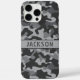 Personnalisez cette coque grise camouflage pour iPhone 16 pro max avec votre nom dans une police CAP moderne et tendance en gris foncé sur gris clair. C'est masculin et parfait pour votre militaire, chasseur, amateur de plein air ou de campagne préféré !