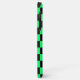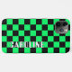Fun funky noir et brillant vert citron couleurs drapeaux de course vérifier le design motif. Avec espace pour personnaliser ou customiser avec un nom de votre choix en blanc et noir. Conception amusante, élégante, élégante et éclectique pour la fashionista artistique, la diva de mode artsy, populaire branchiste, style rétro vintage, et amoureux abstrait de motifs numériques géométriques qui veut protéger leur téléphone de la poussière et la saleté, l'usure et la déchirure. Cette conception est disponible pour les coques de téléphones cellulaires Apple iPhone 6, 7 et 8 Plus, 10 ou X, XR, XS, 11, 12, 13 Mini, 14, 15 Plus et Pro Max. Montrez votre style, regardez à la mode et sentez élégant avec un design unique sur un appareil mobile de votre choix.