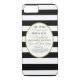 coque iphone avec le psaume 91 de vers d'écriture sainte : 4. L'arrière - plan est rayure noire et blanche avec le noir et le lettrage d'or.