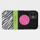 L'iPhone de volleyball d'impression de zèbre d'amusement 5 rayures noires et blanches de zèbre de caractéristiques de cas au fond de l'iPhone et à un volleyball à la moitié supérieure de l'iPhone sur un arrière - plan noir et un accent a assourdi le cadre vert de frontière d'aspect de point de ruban pour vous nom, initiale ou tout autre texte. Montrez votre personnalité avec ce cas à la mode et d'amusement de l'iPhone 5. Fait un grand cadeau pour toutes les occasions. Cliquez sur la "personnaliser il !" boutonnez pour changer la couleur d'arrière - plan, la couleur des textes, la taille des textes, le style de police et plus !