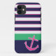 Protégez votre iPhone avec le ce les rayures nautiques mignonnes et ancrez le coque iphone. Ce cas adorable comporte les rayures nautiques de marine, de blanc, de rose et de menthe avec une ancre mignonne au fond. Ce cas de très bon goût et estival sera l'accessoire à la mode parfait à n'importe quel équipement !