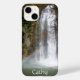 Un Coque iPhone 14 avec une photo d'une cascade avec un arc en ciel magnifique au fond. Personnalisez ceci en changeant le nom !
