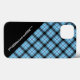 Ce coque "dur extrême" pour l'iPhone 6 est le tartan bleu et noir plaid avec un grand texte de script blanc dans un triangle de noir. Très rétro mais moderne aussi ! Facile à personnaliser ou à supprimer un exemple de texte. Tous Droits Réservés 2014 Alan & Marcia Socolik.