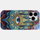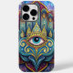 An artistic and detailed representation of the hand of Fatima, a powerful symbol of protection and good fortune, adorned with intricate designs and an all-seeing celestial eye.