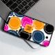 Un design lumineux et audacieux de cercles abstraits dans les tons rose, turquoise et orange. Un monogramme centré sur un carré orange est disponible pour customiser le design. Elégant et attrayant.