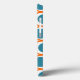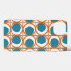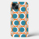 Ce boîtier téléphonique a un design moderne du milieu du siècle de cercles orange ouvert avec des cercles turquoises solides qui traversent le motif avec des lignes verticales turquoises et des lignes horizontales orange.