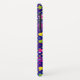 Cette couverture de coque de cellule bleu marine a des motifs colorés de cercles aléatoires qui sont recouverts de pointes en diagonale en jaune vif, orange, violet, vert, bordeaux, rose chaud, bleu clair et blanc. Customisez le cercle blanc et bleu avec votre nom, vos initiales, votre monogramme ou autre libellé. Faites le cercle et le nom aussi grand ou petit que vous le souhaitez, ou retirez-le complètement.