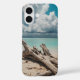 Une scène de plage sereine où le bois flotté rencontre la douce mer turquoise.