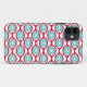 Ce boîtier de téléphone a un design moderne du milieu du siècle des ovales de couleur betterave connectés dans des chaînes avec des cercles concentriques turquoise faits de cercles à l'intérieur. Même design, couleurs différentes ? Message-moi.