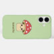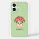 Un étui de téléphone vert avec une illustration d'un mignon champignon dans le style de dessin animé et texte personnalisable ci-dessous! Il pourrait être parfait pour un enfant ou un ami qui aime le caractère et la nature de Kawaii!