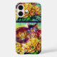 Chat coloré, expressif avec des tournesols peinture acrylique de Bulgan Lumini.