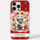 Faites une déclaration avec cette coque de téléphone iPhone 16 Pro Max qui présente un chat chanceux entouré de fleurs rouges sur un fond doré et rouge. Ce Maneki-neko japonais moderne et traditionnel est conçu pour attirer la chance, la prospérité et les clients dans votre entreprise. La patte gauche levée attire les clients et la richesse, et le chat blanc symbolise le bonheur général. Il devient unique avec votre nom en lettres majuscules noires. Invitez la chance et la prospérité dans votre vie !
