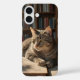Un chaton tabby paisible qui profite d'un moment de lecture confortable, parfait pour les cas téléphoniques calmes et à thème littéraire.