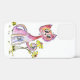 Il s'agit d'une peinture originale sur médias mixtes d'un chat rose fantaisiste avec deux fleurs jaunes.