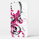 Unique et funky rose chaud (magenta), noir et blanc floral scroll personnalisé coque. Un design féminin différent et créatif mais élégant et joli. Parfait pour la fille unique. Changez le prénom à votre propre nom pour le personnaliser. Ça lui fait un grand cadeau.
