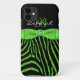 Cas moderne décoré d'un monogramme de marque de Coque-Compagnon de l'iPhone 5 de motif de rayure d'impression de zèbre de parties scintillantes de FAUX de vert et de noir de chaux à peine là avec le ruban IMPRIMÉ et la broche IMPRIMÉE de bijou. Customisez-le pour ajouter votre nommé, l'initiale, ou tout autre texte. Si vous avez besoin d'aide, envoyez niteowlstudio@gmail.com.