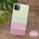 Motif contemporain jaune citron clair, vert pomme pastel et rouge framboise clair rayures de couleur rouge. Avec place pour customiser ou personnaliser avec un nom, monogramme ou initiales de votre choix. Belle couverture moderne et cool pour le brancheur tendance et amateur d'art branché, amoureux de motifs artistiques qui veut protéger leur téléphone de la poussière et de la saleté, de l'usure et de la déchirure. Cette conception est disponible Apple iPhone 6, 7, 8 Plus, 10 ou X, XR, XS, 11, 12, 13 Mini, 14, 15 Plus, et Pro Max coques de téléphone cellulaire. Montrez votre style, regardez à la mode, et sentez élégant avec un design unique sur un accessoire mobile de votre choix.