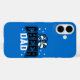 iPhone 16 coque est montré dans une couleur bleue royale avec une impression papa pom cheer. Customisez cet objet ou achetez tel quel. Impression sous licence