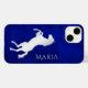 Ce coque unique présente une belle silhouette argentée brillante élevant l'image d'un cheval contre un arrière - plan bleu royal dégradé. Ajoutez votre nom en argent assorti sur la droite, et vous avez un coque élégant, en particulier pour quiconque aime les chevaux.