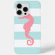 Coques Case-Mate iPhone Cheval de mer rose sur les rayures de menthe