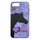 Une silhouette d'un cheval' ; s tête sur un arrière - plan violet/bleu avec un coeur violet/noir et le mot " ; Cheval" ; . Le coque iphone parfait pour votre amoureux du cheval.