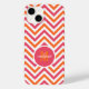 Ce boîtier de téléphone est doté d'un motif zig zag classique simple rose et orange chevron avec une entrée en cercle rose pour personnaliser avec votre nom et votre initiale.