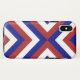Sauvegardez votre iPhone X avec un cas dur de Coque-Compagnon résistant aux chocs comportant les chevrons rouges, blancs, et bleus de alterner (formes de V) qui convergent dans ce motif géométrique patriotique original.