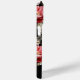 Votre appareil mobile fera une déclaration élégante avec ce design luxueux avec un étiquette noir personnalisé avec bordure tourbillonnant sur un arrière - plan d'élégantes pivoines rouge rubis et crème sur un arrière - plan noir. Deux champs de texte modifiables pour votre nom et/ou monogramme.