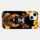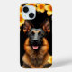 Magnifiquement illustré chien berger allemand, exposé en évidence devant un arrière - plan noir. Le manteau riche du chien est un mélange de teintes noires et brunes, capturant ses caractéristiques expressives, y compris les yeux brillants et les oreilles percées. Autour du chien, un cadre décoratif orné de fleurs jaunes vives crée un contraste chaleureux et accueillant sur fond sombre. La combinaison de l’expression faciale détaillée du chien et des éléments floraux ajoute une touche artistique et charmante à la composition globale.