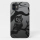 Ce coque iphone cool a une réelle allure gothique avec l'arrière - plan gris fusain et le hibou noir dans un arbre. Une excellente idée cadeau qui aurait l'air génial sur un iphone.