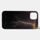 Boulon de foudre dans un ciel noir avec deux yeux de loup jaune.