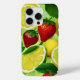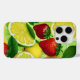 Une coque d'iPhone vibrante présentant des citrons, des limes et des fraises lumineux dans un style botanique frais sur un fond vert doux. La palette joyeuse et estivale ajoute une touche vive et stimulante à la technologie quotidienne tout en offrant un look élégant pour les femmes qui aiment les motifs fruitiers, les accessoires colorés et la décoration de téléphone prête à offrir.
