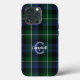 Coque iphone élégant fait dans le traditionnel bleu et vert Campbell écossais tartan motif plaid. Un monogramme bleu simple personnalisé et un texte blanc, est prêt à personnaliser pour vous-même ou comme une idée cadeau formidable.