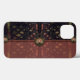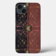 Vieux monde européen, exotique et sombre, avec une légère saveur de l’Orient, le beau motif de ZoeSPEAK, aux couleurs naturelles sur ce Coque iPhone 13, a été fait à partir de la photographie originale de Zoe de lattique en fer forgé et tissu imprimé tropical. Les frondes de palmiers et autres feuilles tropicaux, dans les tons verts pâles, en terre cuite et beige, reposent gracieusement sur un arrière - plan noir derrière le latticework. Le design est dans le style d'un sac d'embrayage ou d'un sac à main, avec une fermeture à bouton médaillon fleuri sur un arrière - plan foncé, un rabat en tissu lisse sur un tissu texturé bordeaux passé du même motif. Le rabat est bordé d'un ruban saumon rose grosgrain.
