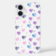 Aimez-vous les cas de téléphone mignons ? Ce boîtier téléphonique a un motif de coeurs et de points fait en rose, bleu et violet aquarelle.