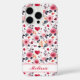 Un charmant coeur rose romantique et un étui à motifs floraux rose. Un beau design motif sans couture de fleurs roses florales et de coeurs roses vifs Ajoutez votre nom ou votre initiale pour en faire un objet personnel et unique.