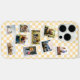 Créez votre propre coque iphone photo-collage personnalisé. Ajoutez simplement 9 de vos photos préférées à ce modèle de collage avec des cadres de style photo instantanée et un arrière - plan à damiers rétro jaune.