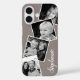 Photo personnalisée Instagram Collage Ash Grey Personnalisé iPhone 16 Coque. Ce design moderne branché propose un espace pour 4 photos de style instagram carré. Ajoutez votre nom ou votre texte pour personnaliser davantage ce design personnalisé do-it-yourself choisissez votre propre couleur arrière - plan.