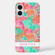 Customize this colorful coral and turquoise watercolor shell iPhone 16 case with your your name in a trendy modern CAP font in pink on white. It's so modern and trendy!