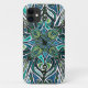 Un mandala abstrait tiré par la main avec à l'encre dans un motif saisissant de starburst et de fleur. Coloré avec le crayon dans les tonalités du bleu et du vert.
