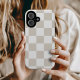 Boho damier tendance imprimé étui téléphonique dans les tons beige clair et blanc. Utilisez les outils de conception pour ajouter votre propre monogramme, nom ou autre texte, ou changer la couleur arrière - plan pour créer une couverture de périphérique unique d'un type particulier.