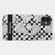 coque iphone cool imprimé avec une illustration de tranches de pizza et d'herbes sur un arrière - plan à damiers noir et blanc. Parfait pour les chefs italiens, les pizzas et les amateurs de pizza