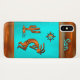Personnalisez ce coque iphone cellulaire unique "Un d'un genre" au sud-ouest de Kokopelli! Il comprend une Kokopelli sud-ouest en cuivre jouant la Flûte et dansant autour d'un cactus sous le soleil...sur un Arrière - plan turquoise...Entouré d'une frontière de cuivre ! ! Design D'Art Original Par L'Artiste Kerry Miller.