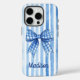 Coques Case-Mate iPhone Coquette bleu rayé arc toile monogramme